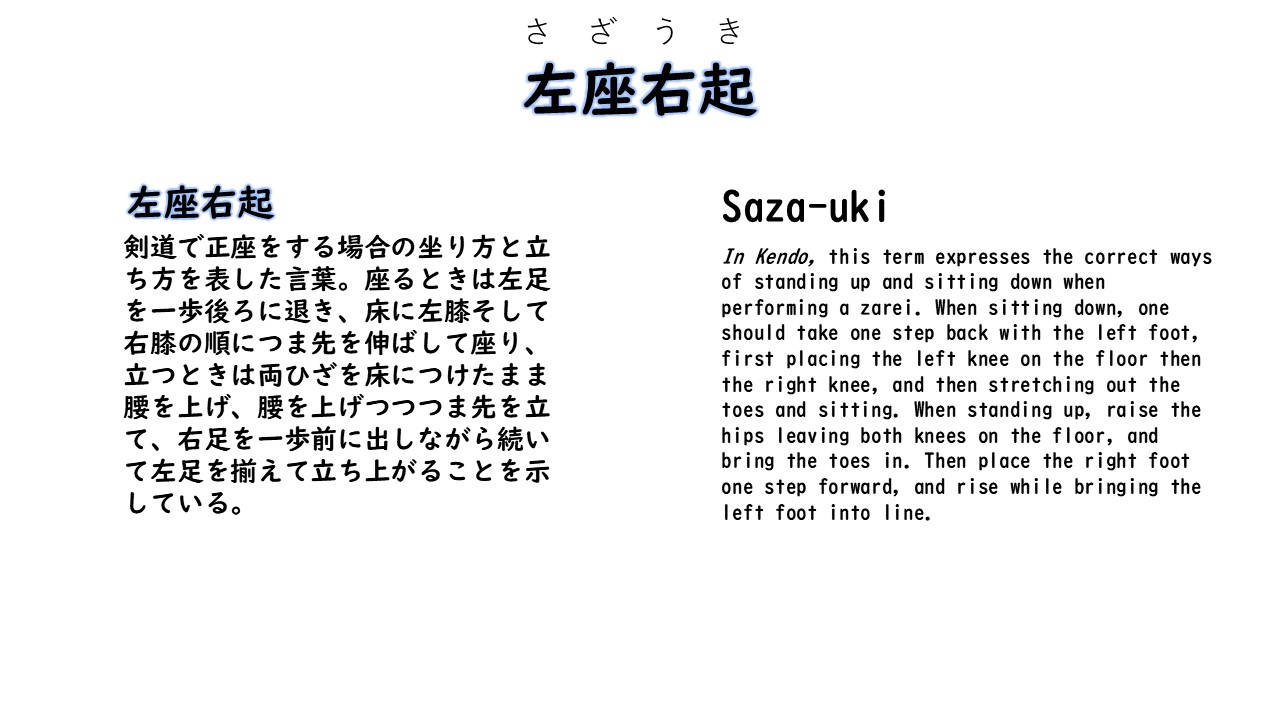 剣道で正座をする場合の坐り方と立ち方を表した言葉。